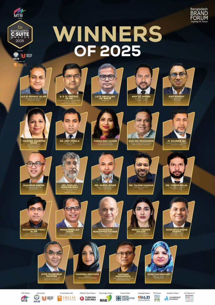 The C-Suite Awards is celebrated as one of Bangladesh’s most trusted platforms for recognizing corporate excellence. The winners were selected not just for delivering results but for setting new benchmarks for corporate leadership in the country.